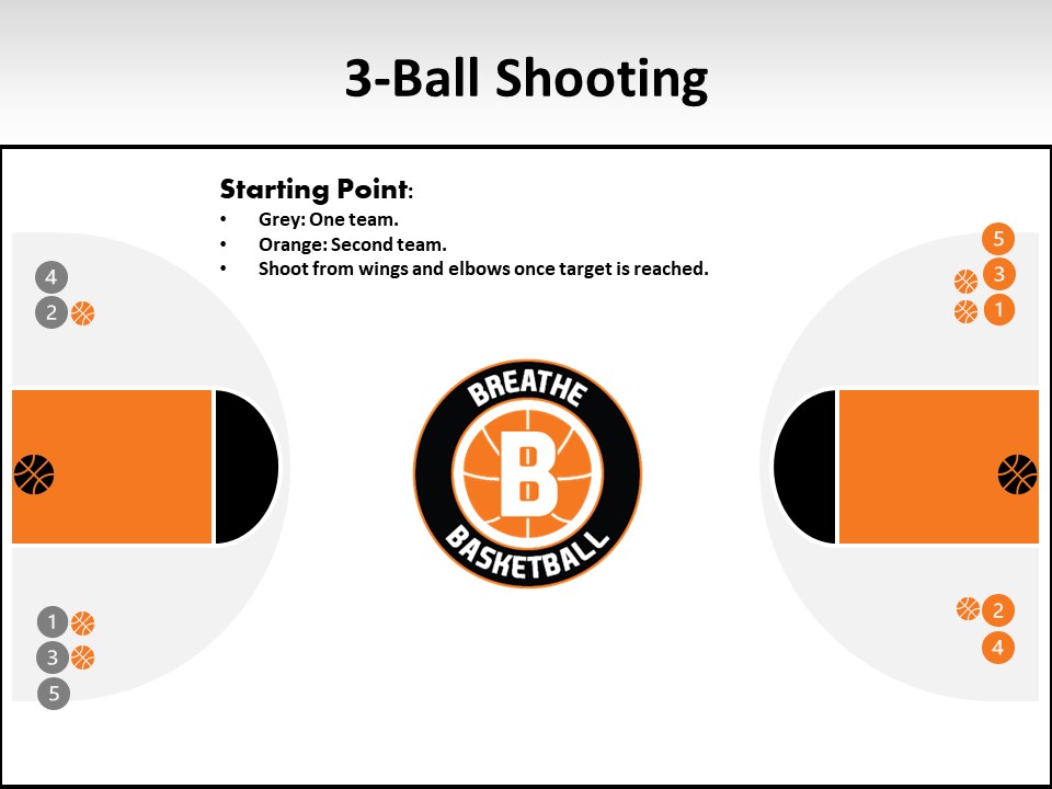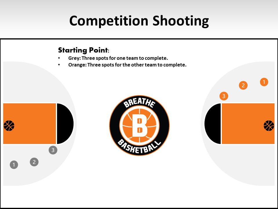 Make a target for the team to strive for, then move to the wing, elbow, and possibly 3-pointers